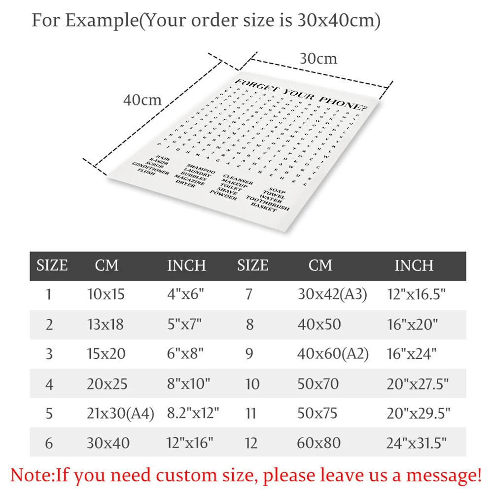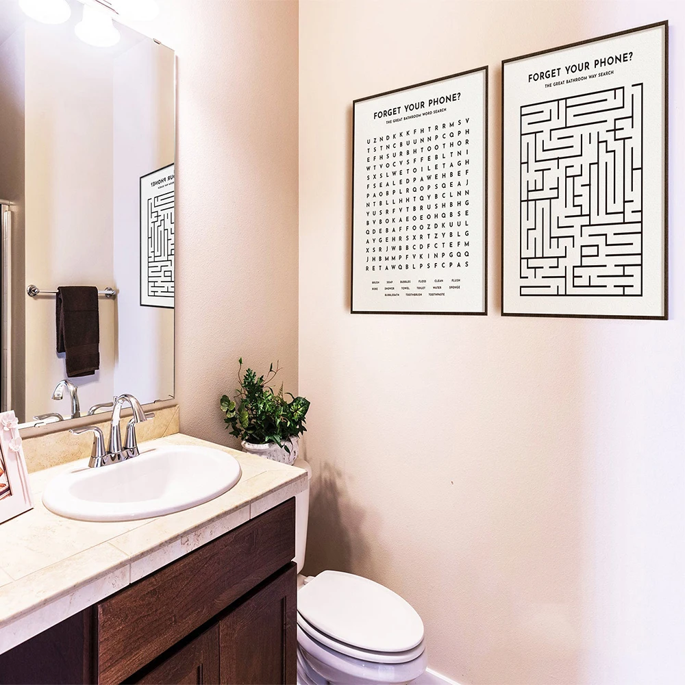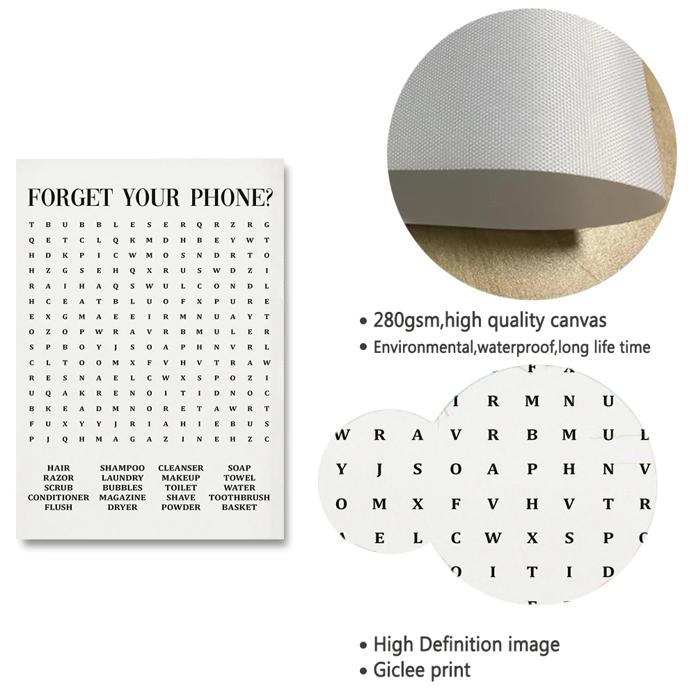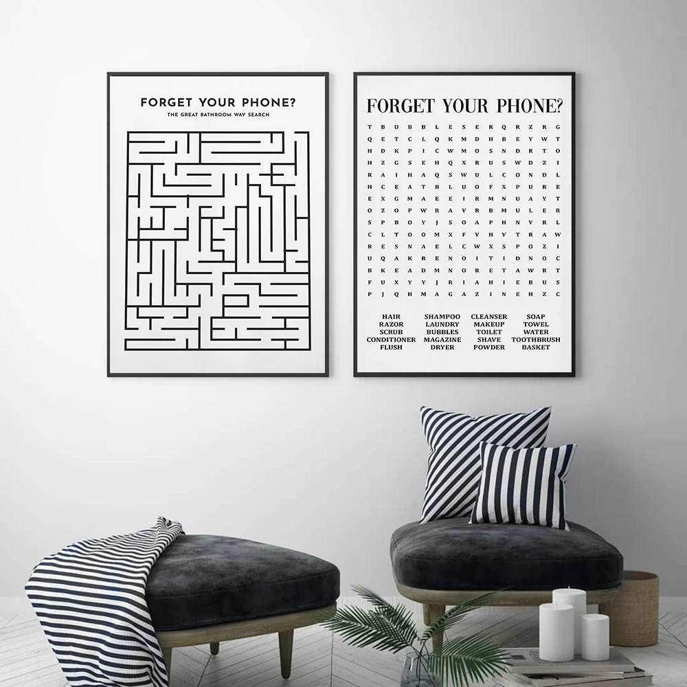 Bathroom Quote Sign Print Black White Poster Forget your Phone Word Search Art Canvas …