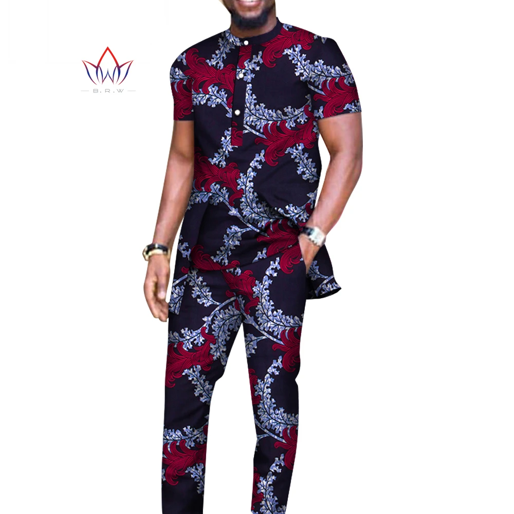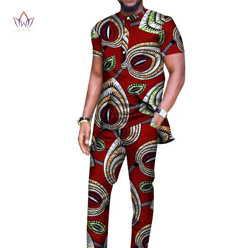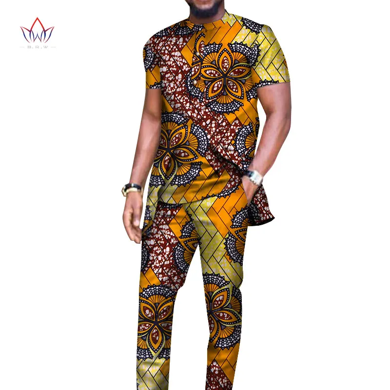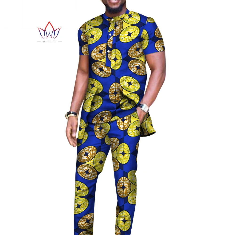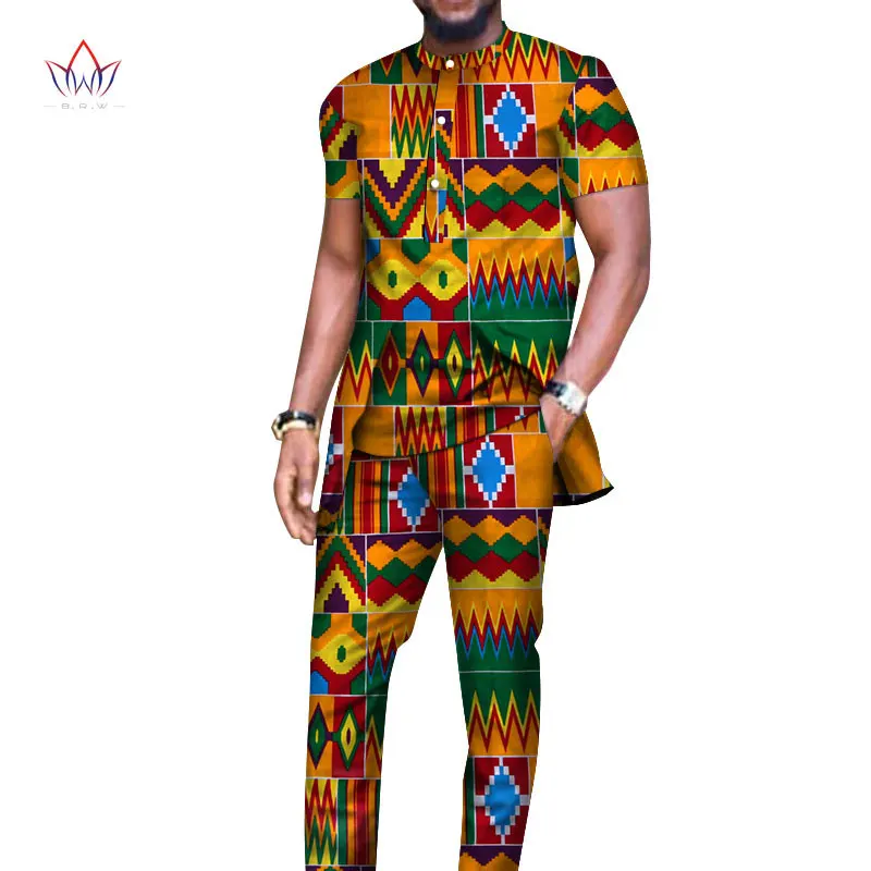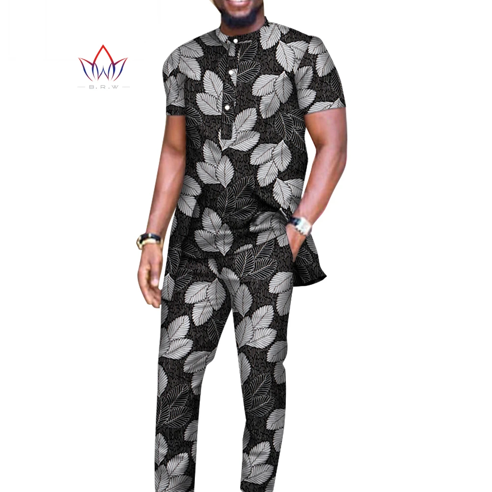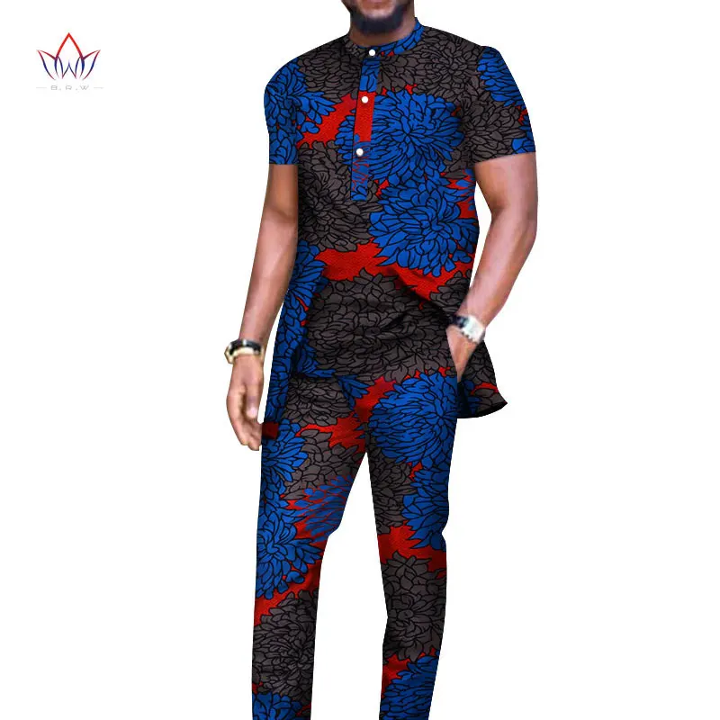 Bazin Riche Men 2 Pieces Pants Sets African Design Clothing African Clothes Casual Men Long Top Shirts and Pants Sets WYN514
