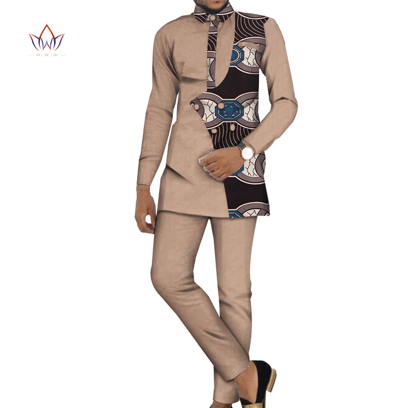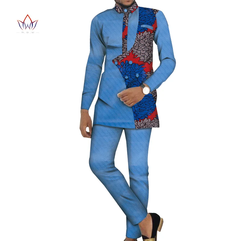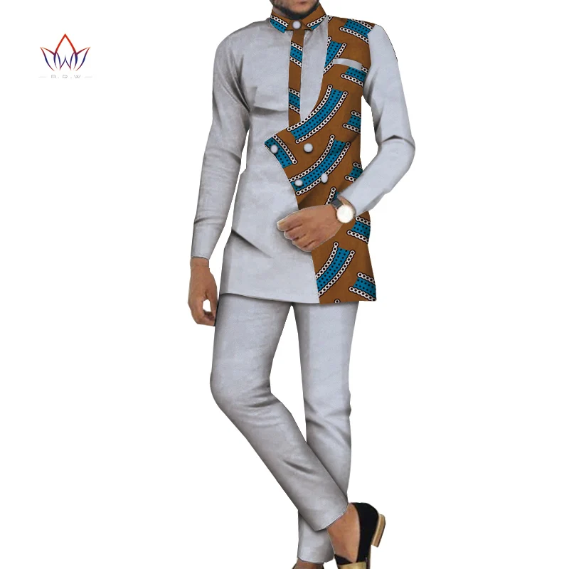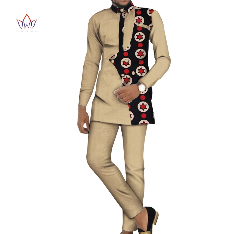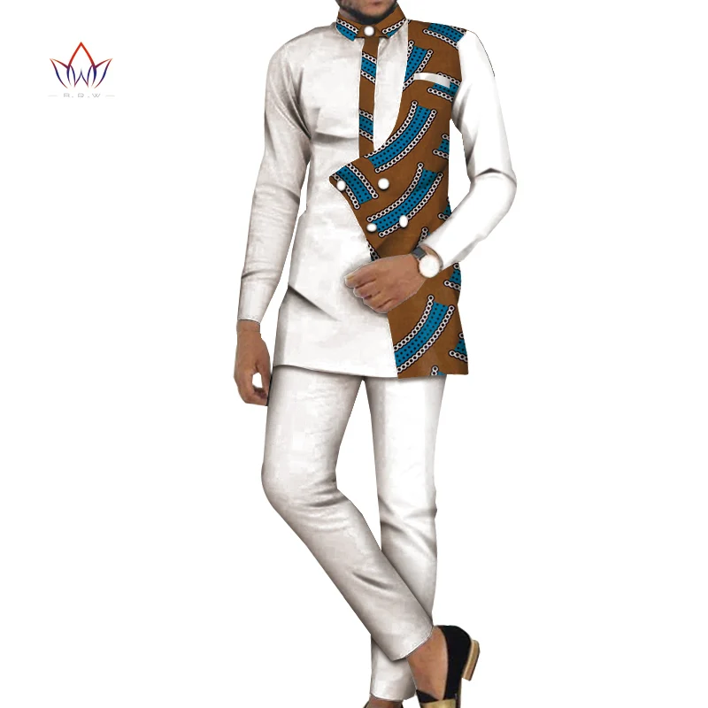 Bazin Riche Men 2 Pieces Pants Sets African Design Clothing African Men Clothes Casual Men Top Shirts and Pants Sets WYN981