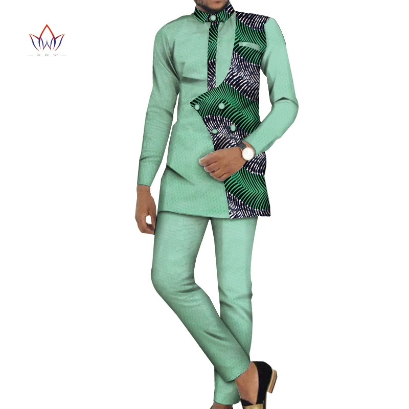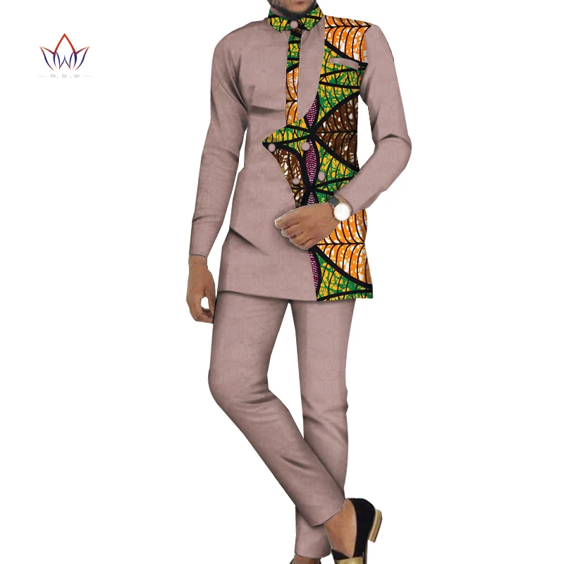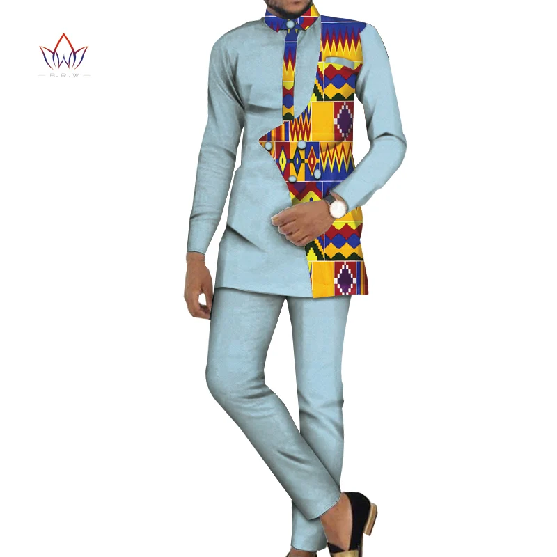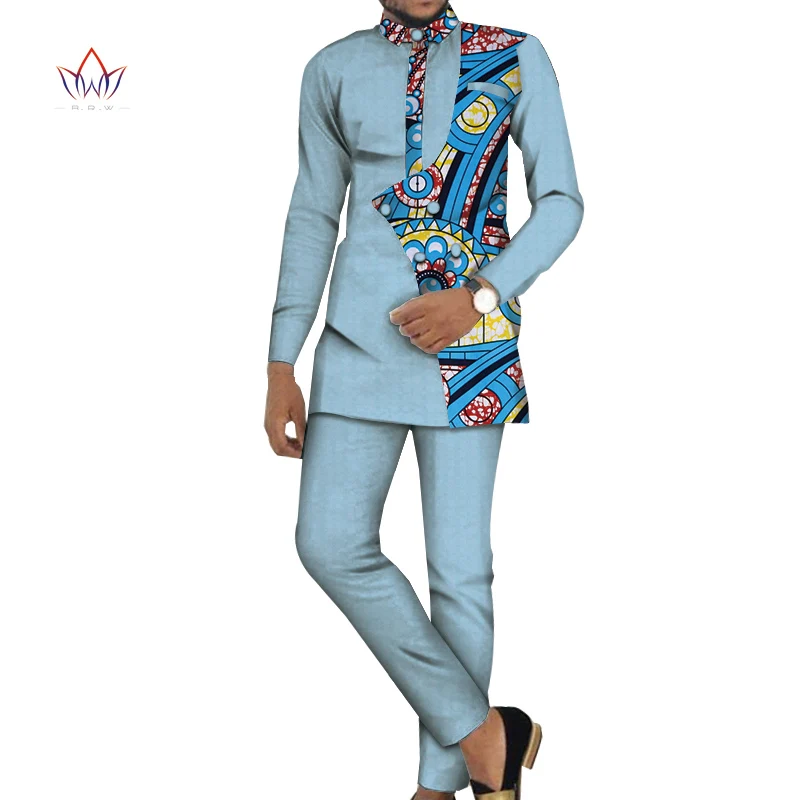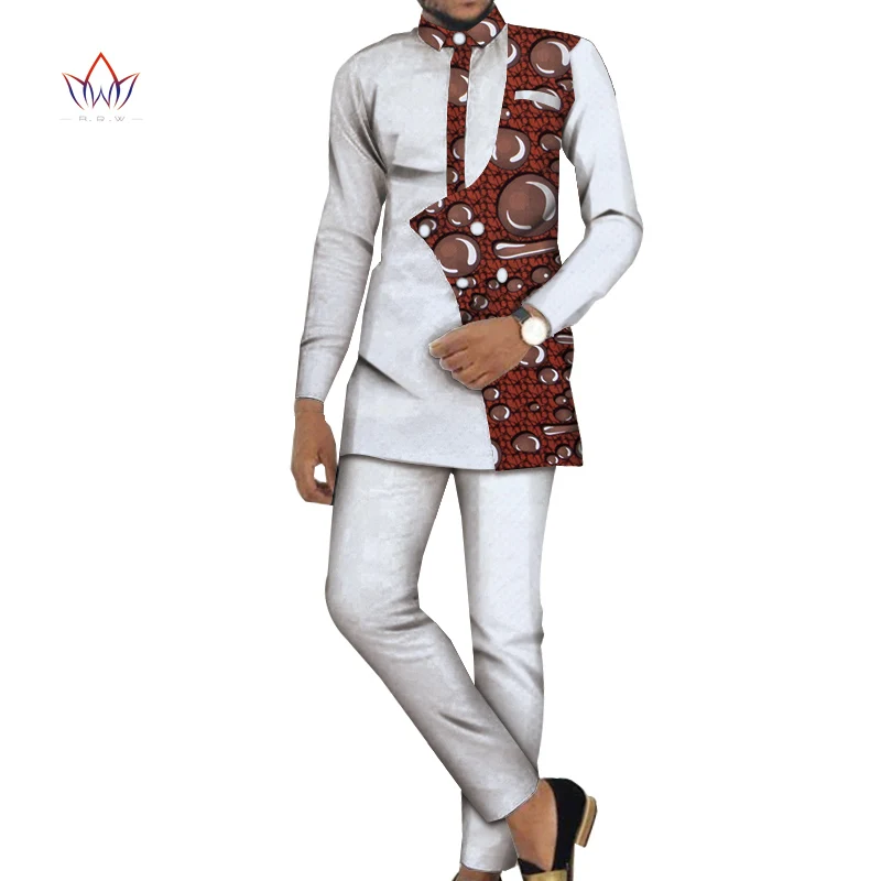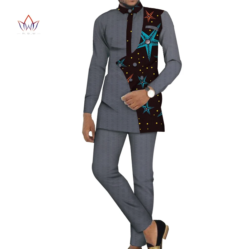Bazin Riche Men 2 Pieces Pants Sets African Design Clothing African Men Clothes Casual Men Top Shirts and Pants Sets WYN981