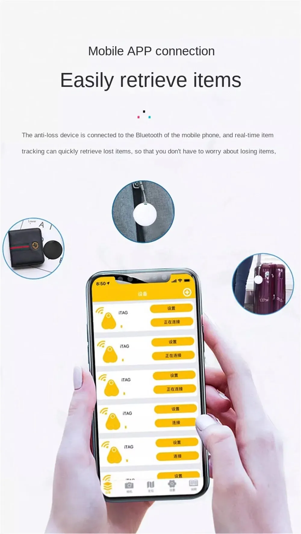 2. Product applicability: all application scenarios such as wallets, luggage, carts, keychains, elderly and children, etc