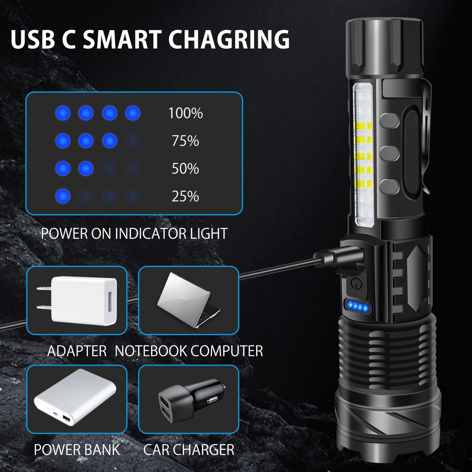❀❀ This product has a power reminder function, You can know the power status of the flashlight anytime, anywhere