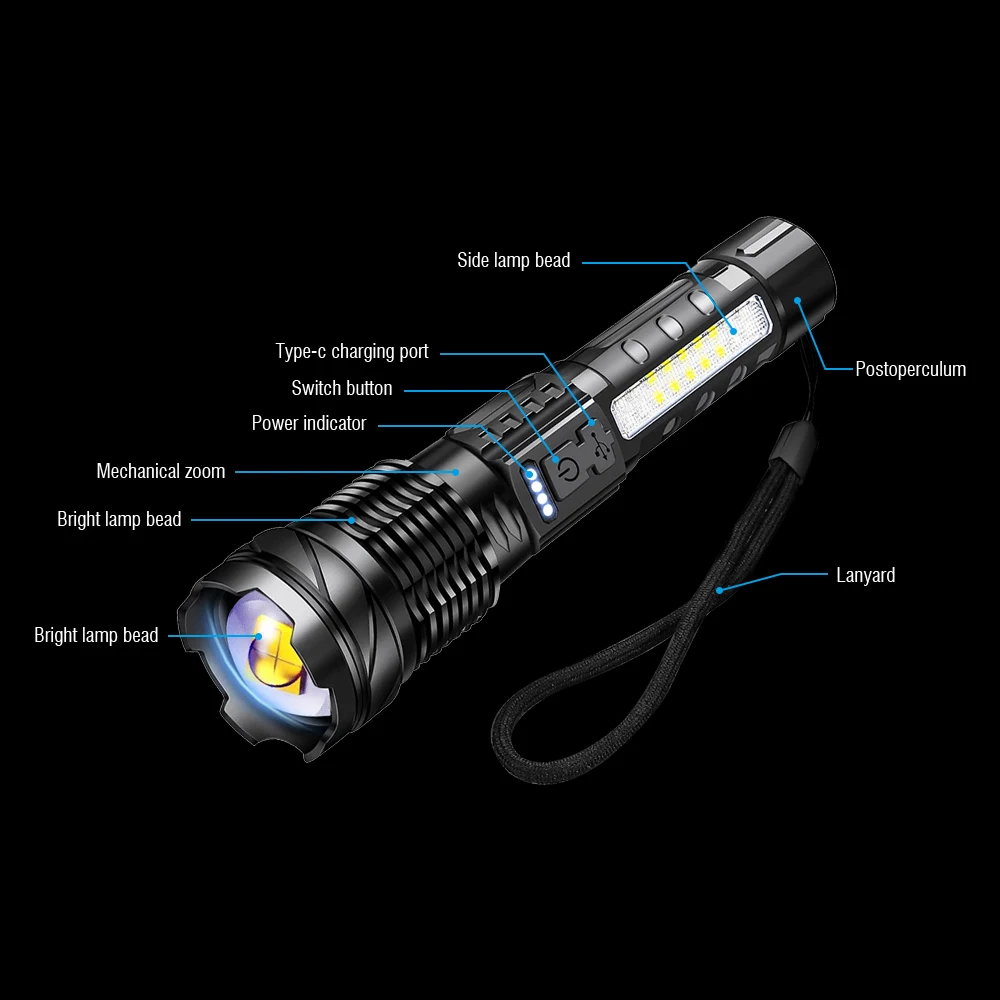 BORUiT 30W Ultra Powerful Zoom LED Flashlight 2600mA Battery USB-C Rechargeable Flash …