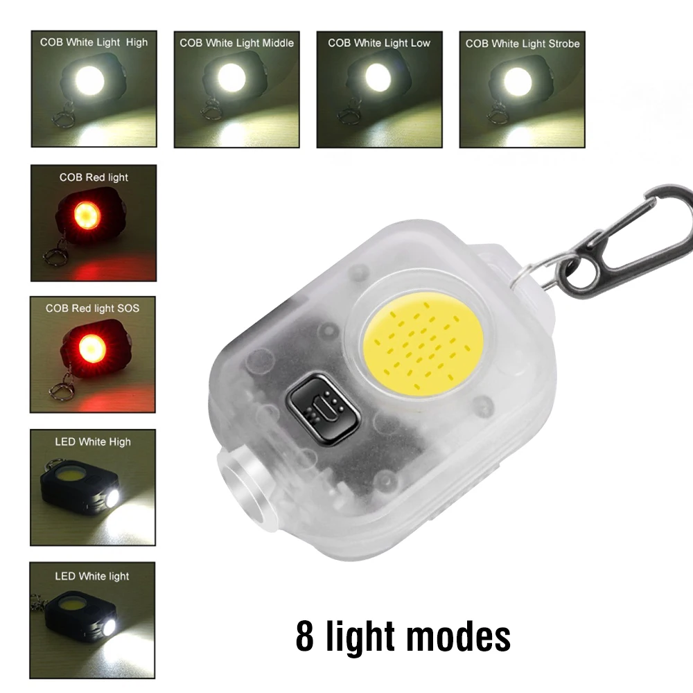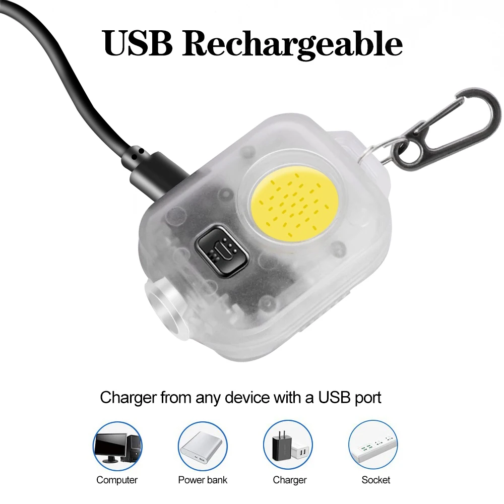 BORUiT Mini COB LED Keychain Flashlight USB Rechargeable Flash Torch Portable Outdoor …