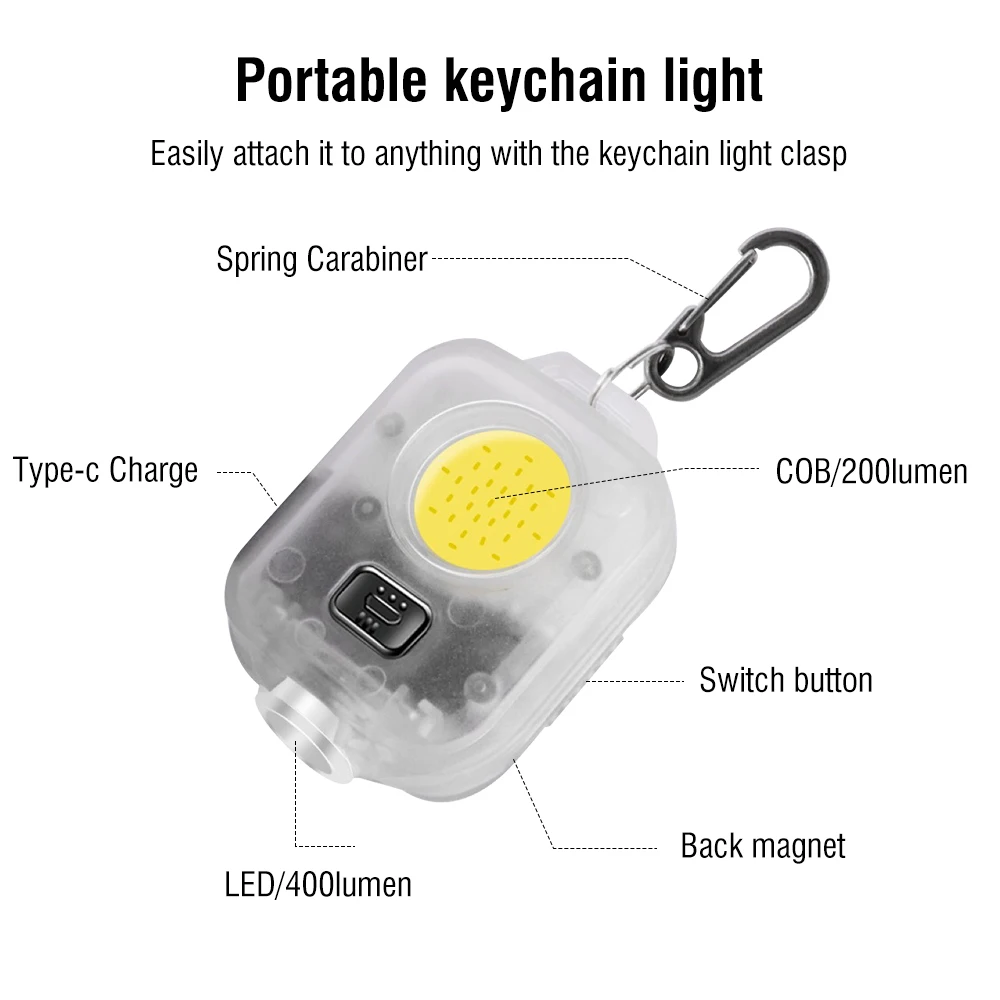 1*work light + keychain, 1*charging cable