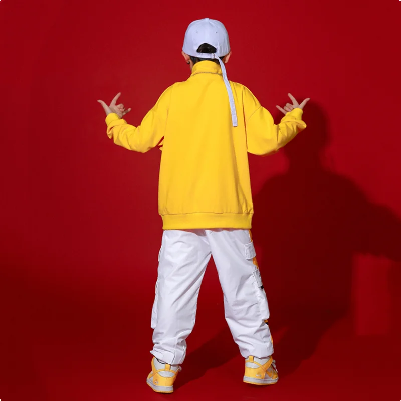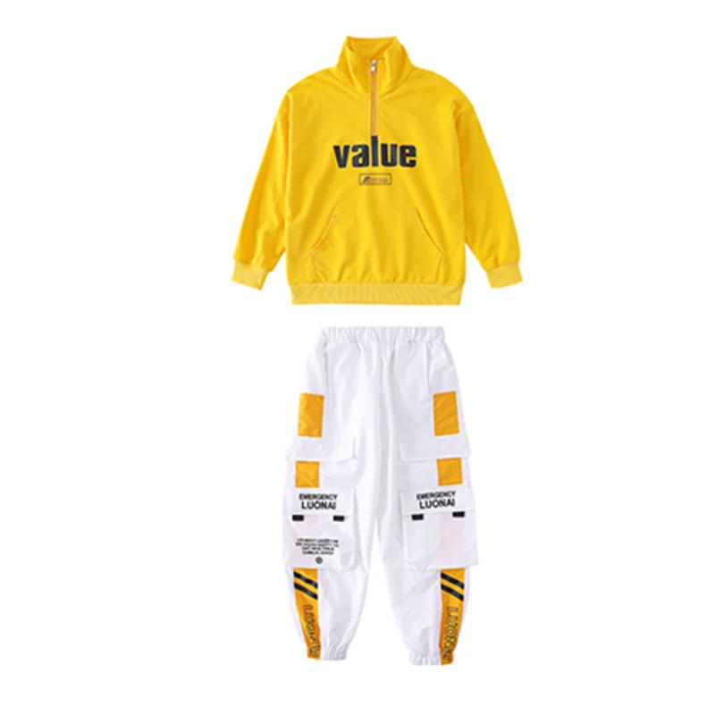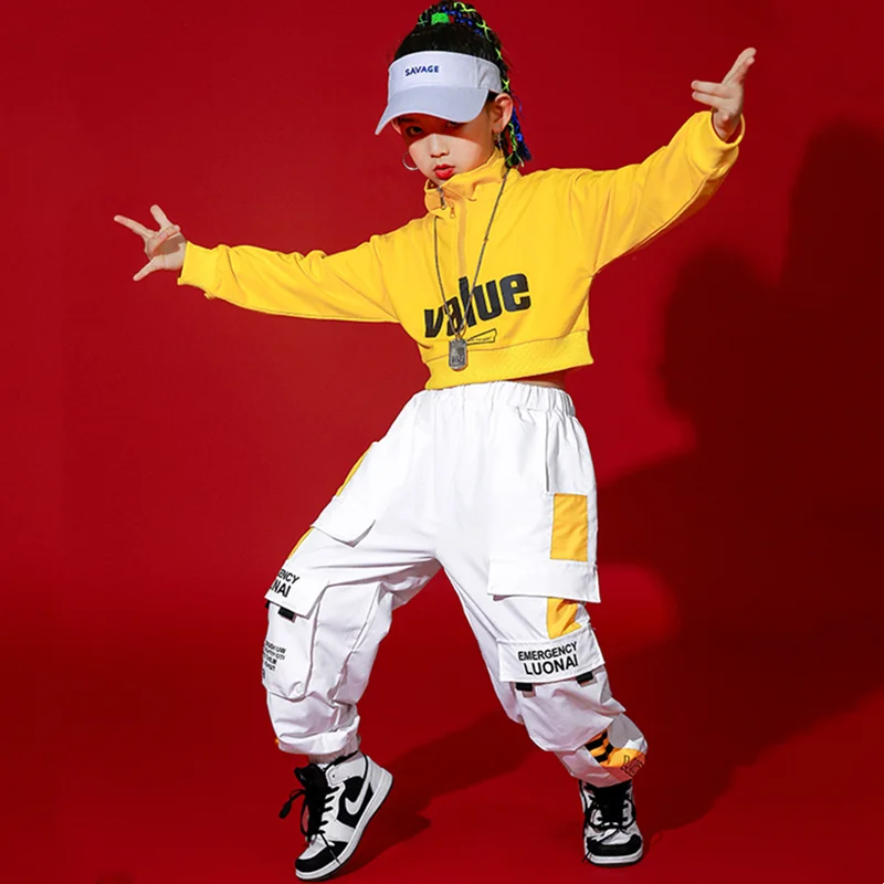 Boys Hip Hop High Collar Sweatshirt Cargo Pants Girls Crop Top Joggers Street Dance C …