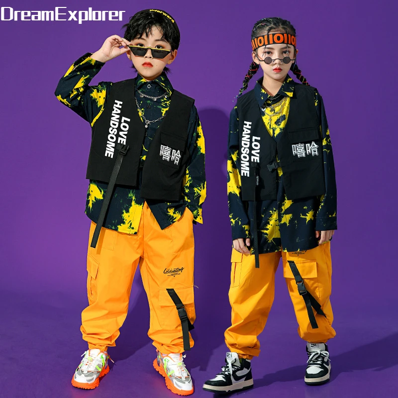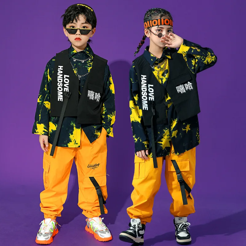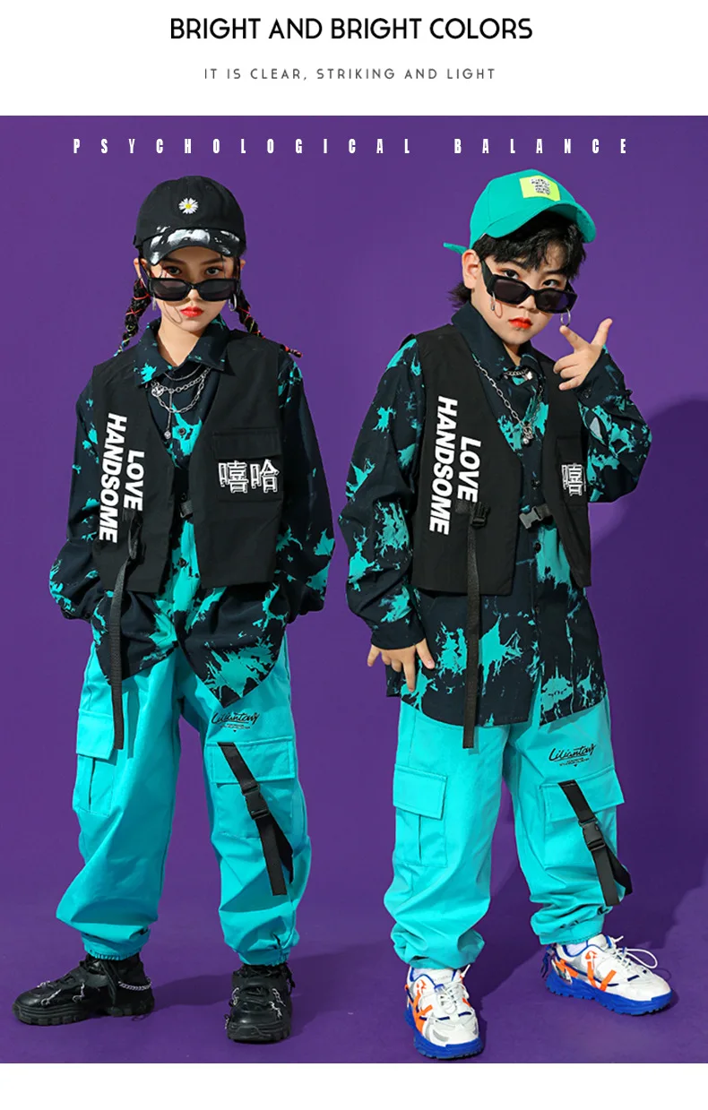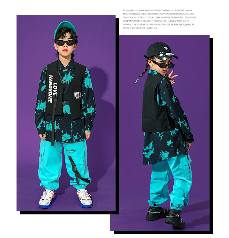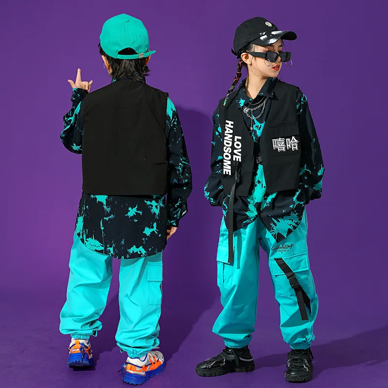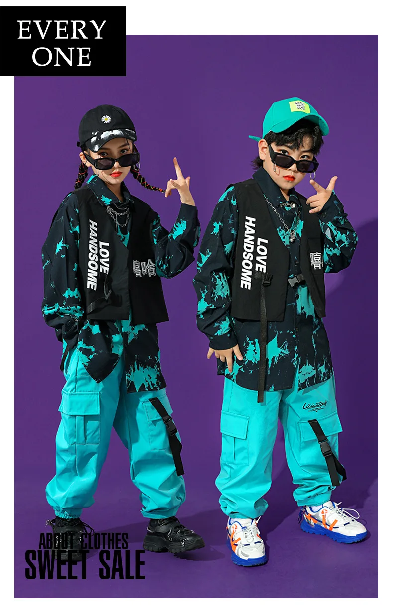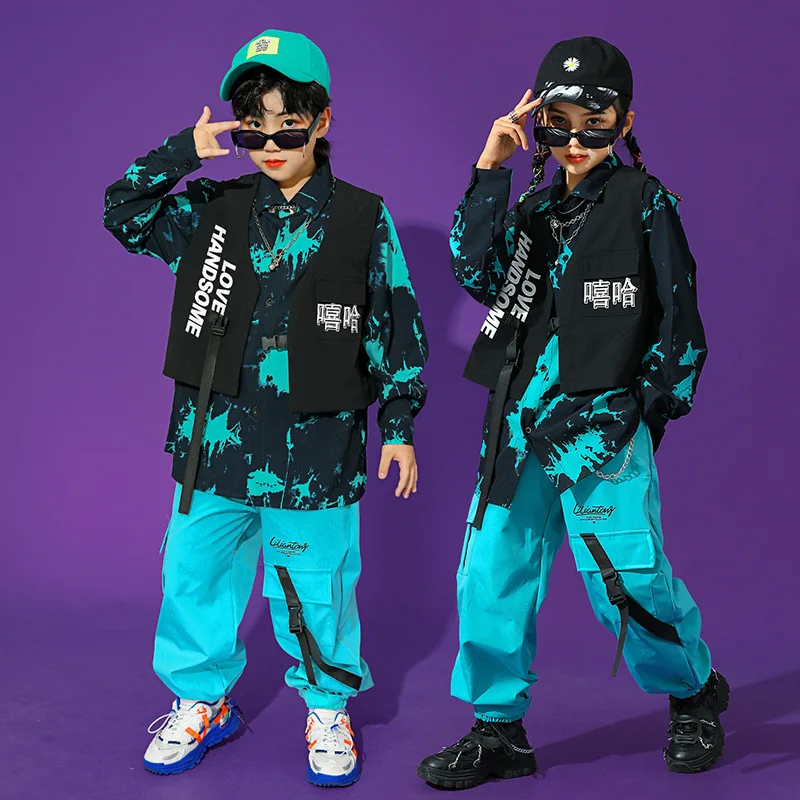 Boys Street Dance Long Sleeve Printed Shirt Vest Joggers Girls Hip Hop Blouse Child C …