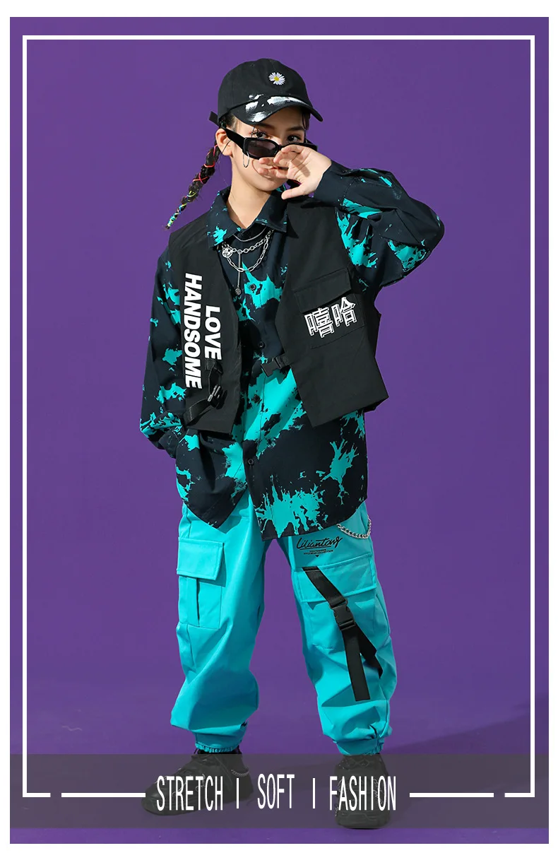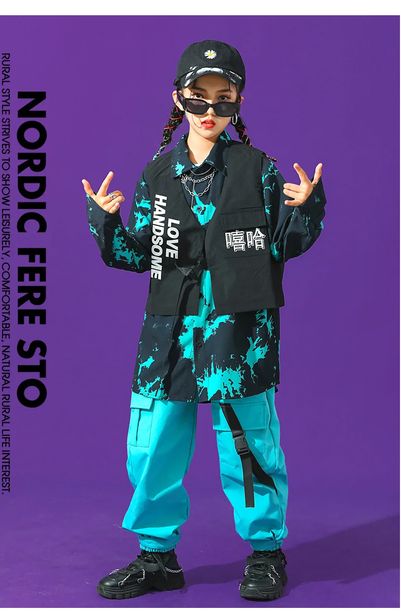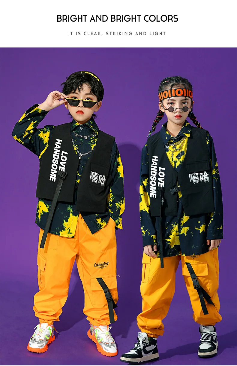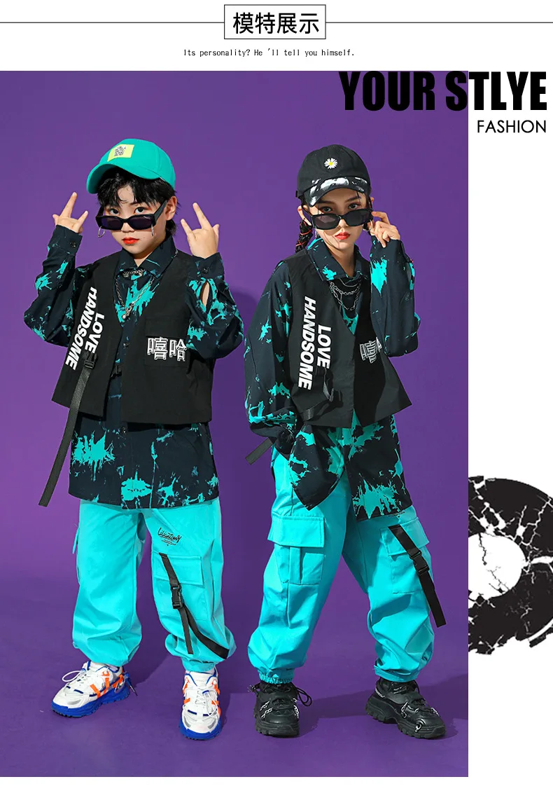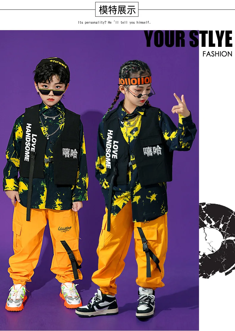 Boys Street Dance Long Sleeve Printed Shirt Vest Joggers Girls Hip Hop Blouse Child C …