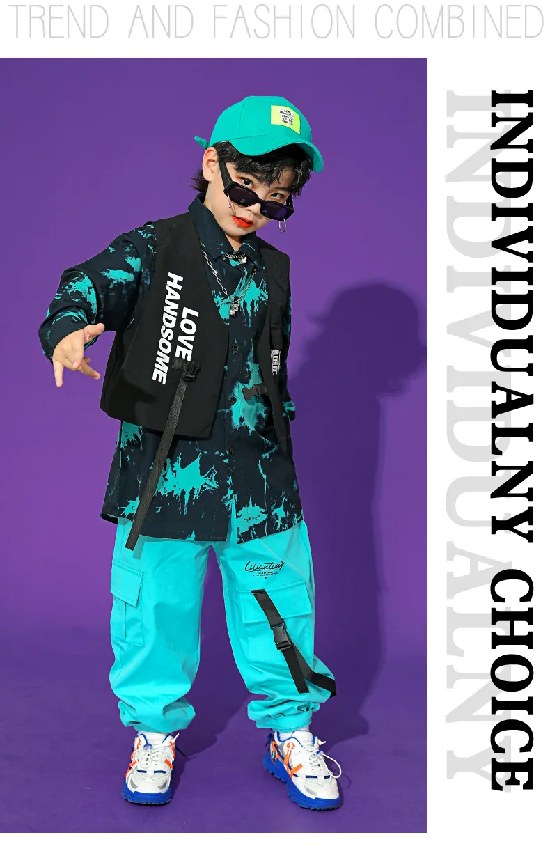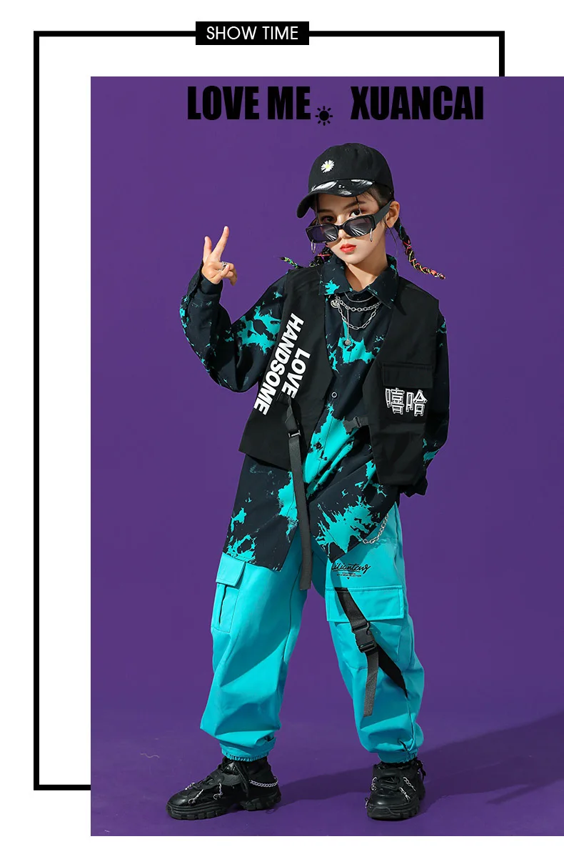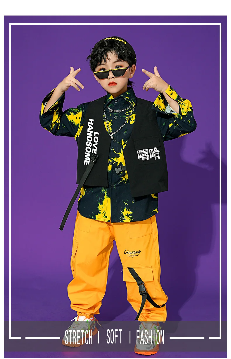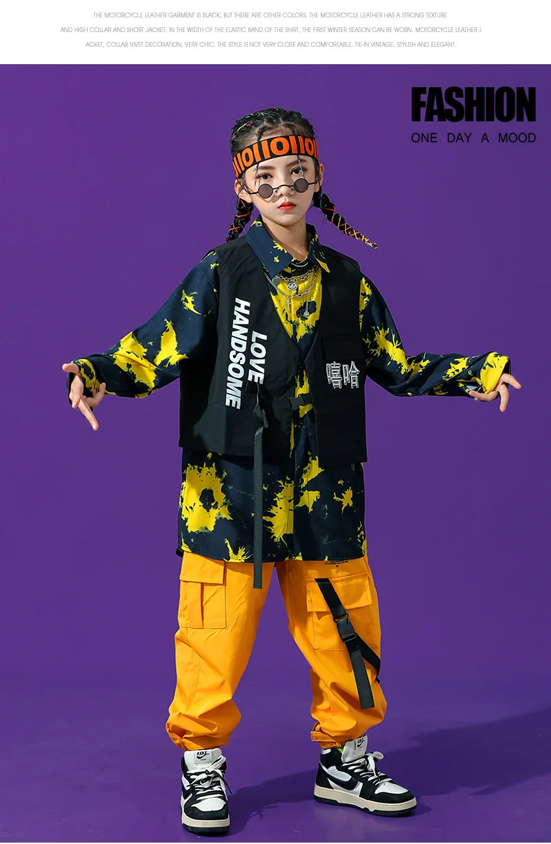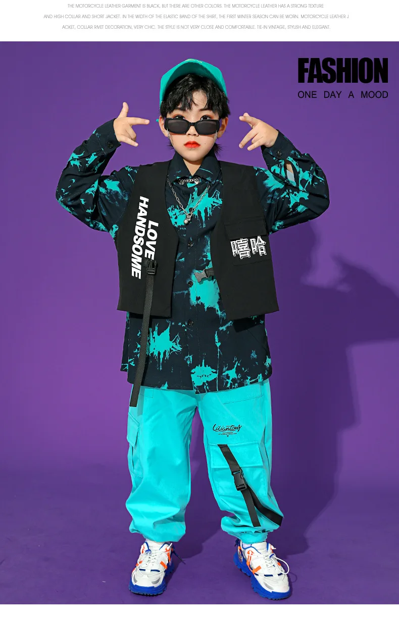 Boys Street Dance Long Sleeve Printed Shirt Vest Joggers Girls Hip Hop Blouse Child C …