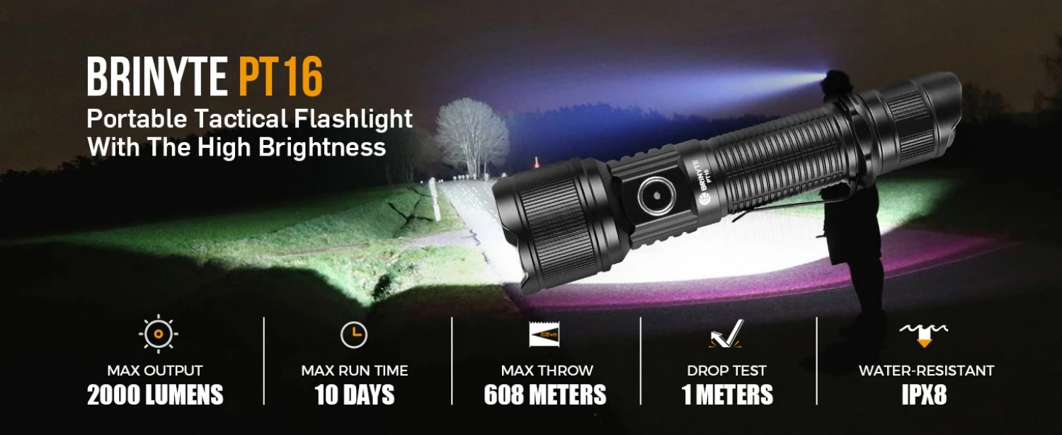 BRINYTE PT16 2000 Lumens Tactical Flashlight