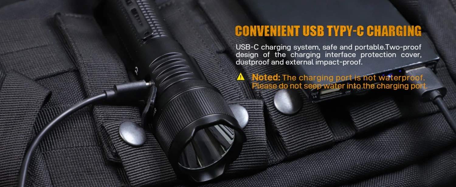 【Easy USB Type-C Direct-Charging】- The PT16 flashlight comes with a USB Type-C charging cable, allows you to charge the flashlight directly without taking out the battery. It can be charged using a power bank, reducing the burden of electricity used outdoors.(The charging port is not waterproof and do not seek water into the port)