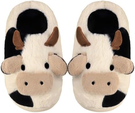 Gaolinci Cartoon Cow Cotton Slippers, Winter Indoor Outdoor Slippers for Women
