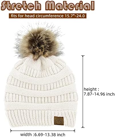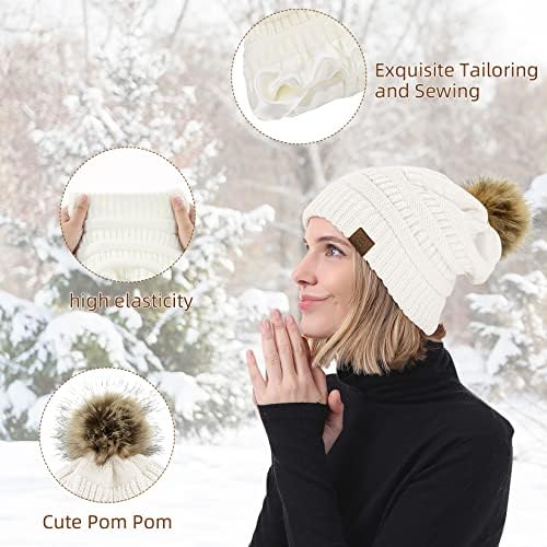 Century Star Satin Lined Beanies Hats Women Warm Winter Knit Hats Thick Beanie with P …