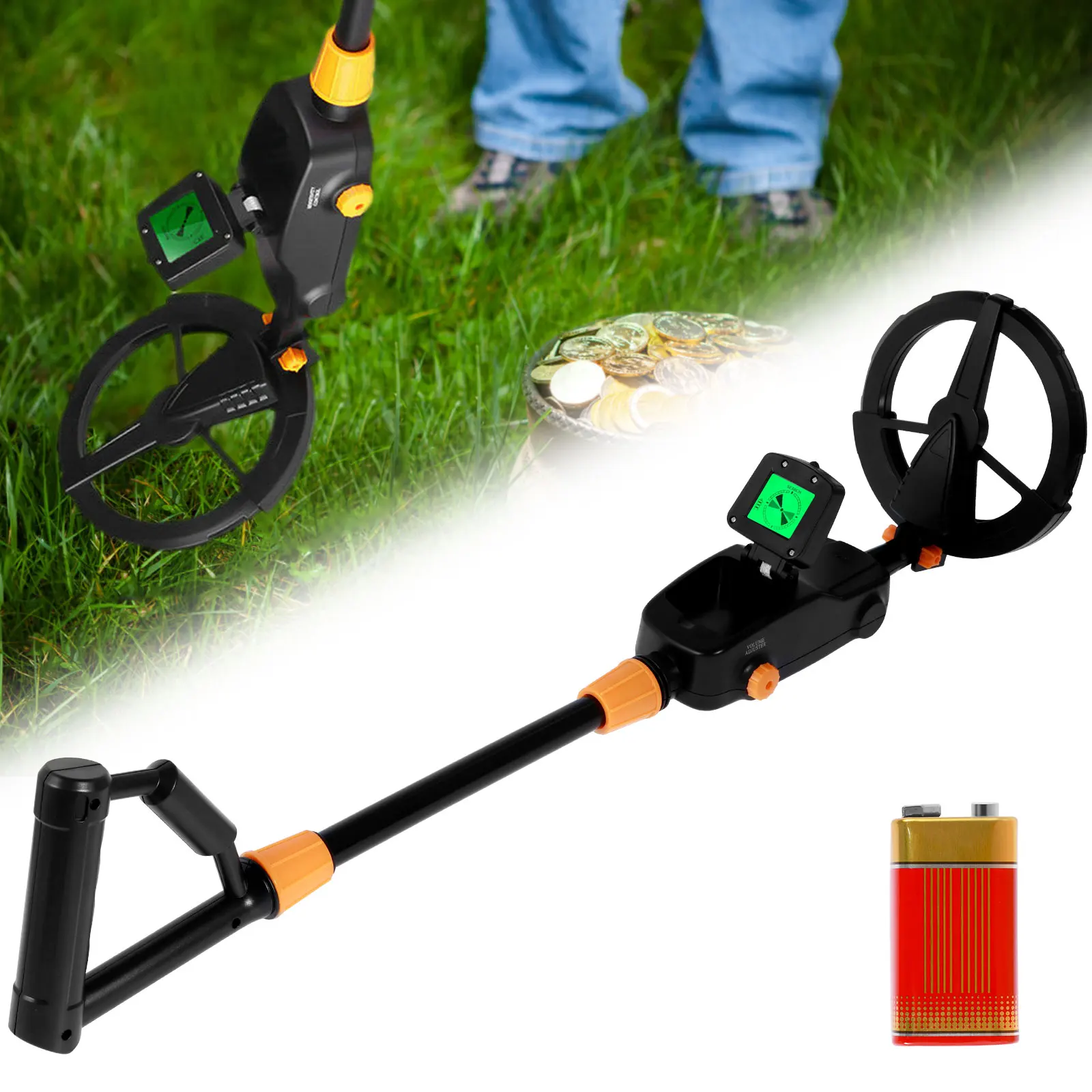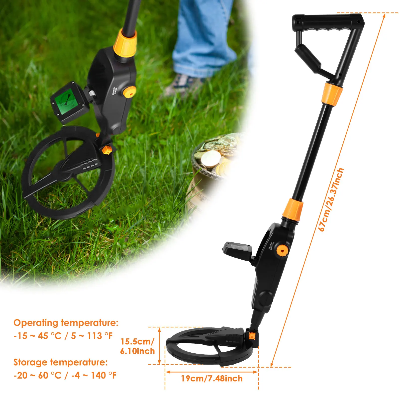 [Detection Indication and Waterproof] This metal detector ha detection indication of sound mode and LCD display, which indicates the metal detection status. And the metal detector is designed with a waterproof search coil, allowing it possible to search and detect in a shallow water.