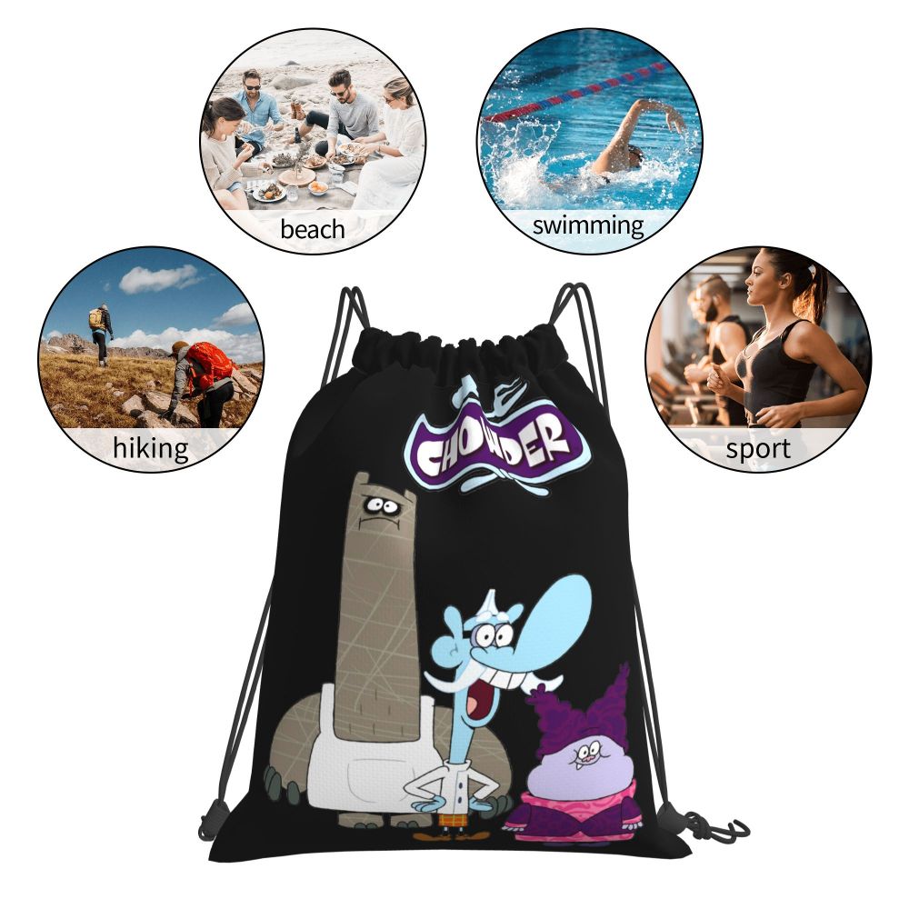 Chowder Cartoon Logo Title Schnitzel Mung Daal Chef Crew Drawstring Bags Gym Bag Swim …
