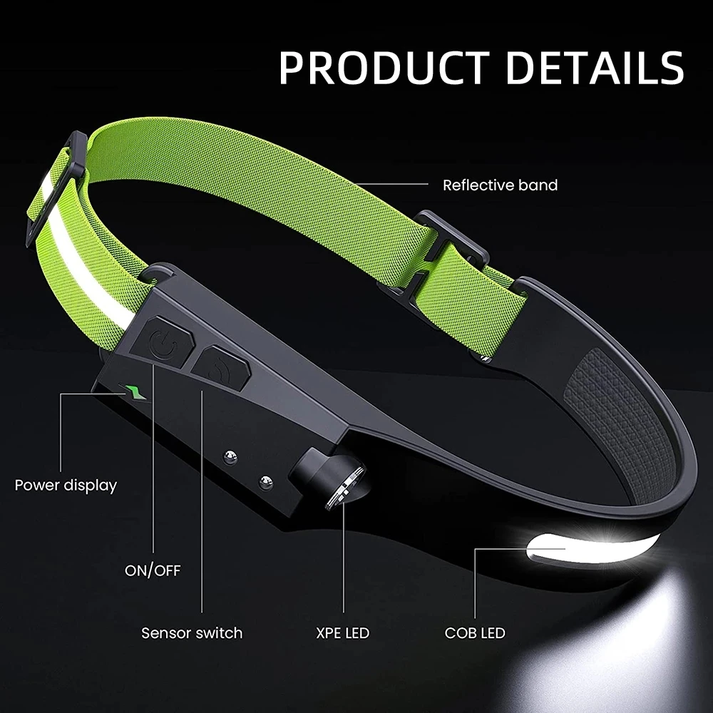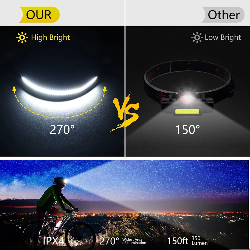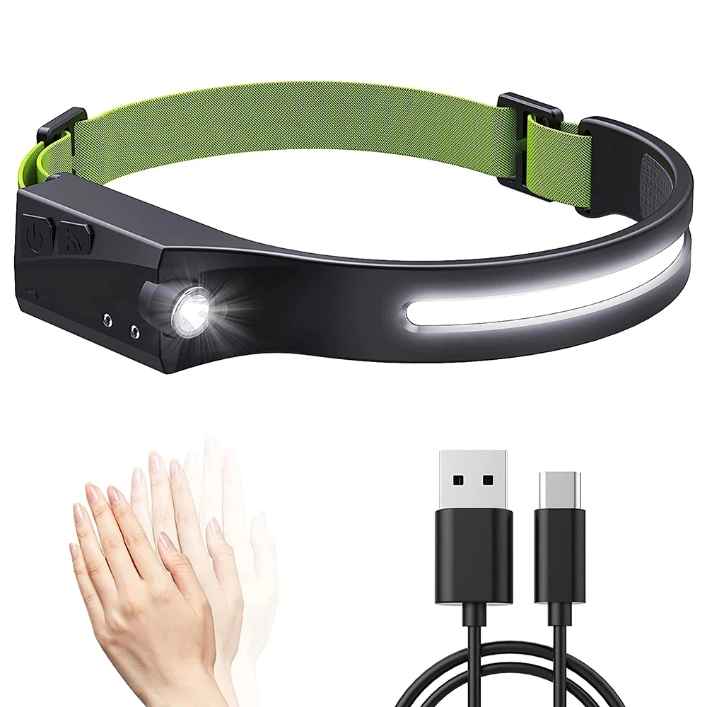 COB LED Sensor Headlamp USB Rechargeable Camping Search Light Built-in Battery Headli …