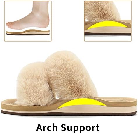 COFACE Fluff Womens Slippers Faux Fur Slip On Orthotic Slippers with Arch Support for …