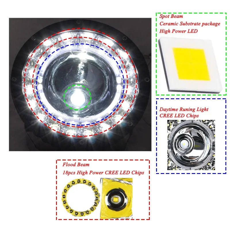 Beam Pattern: 30° Spot/ 90° Flood with White Daytime Runing Light