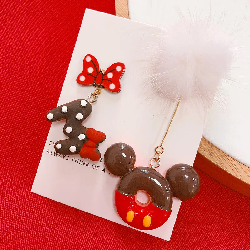Cute Mouse Resin Stud Earrings Dangle Wholesale Letters M Hairy Ball Point Bow