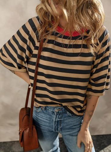 Dokotoo Tops for Women Striped 2024 Fashion T Shirts for Women Color Blocking Design …