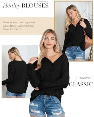 Dokotoo Women’s Ribbed Knit Long Sleeve V Neck Button Blouses Solid Color Loose …
