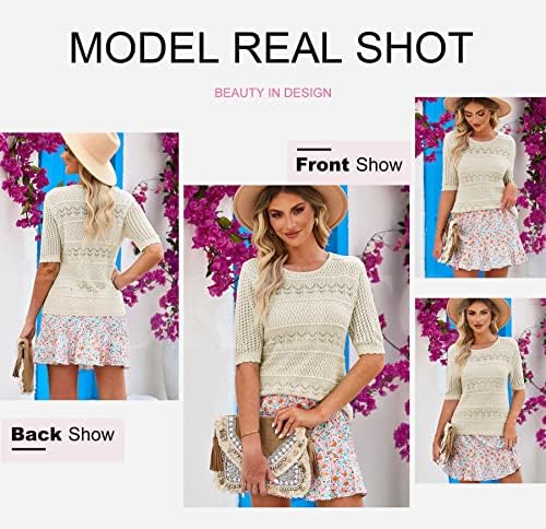 Dokotoo Womens Short Sleeve Sweaters Tops Crew Neck Pullover Shirt Lightweight Knit S …