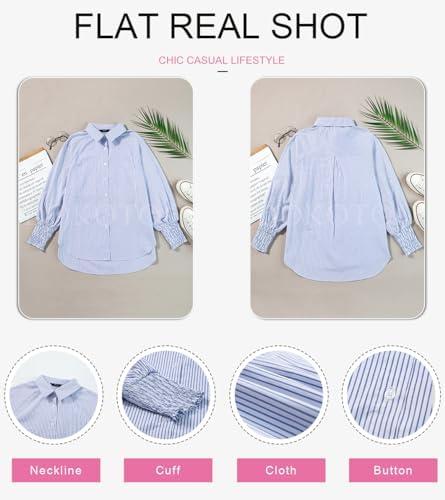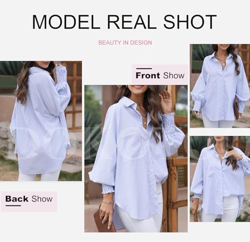 Dokotoo Womens V Neck Striped Button Down Shirts Long Sleeve Tunic Tops