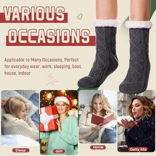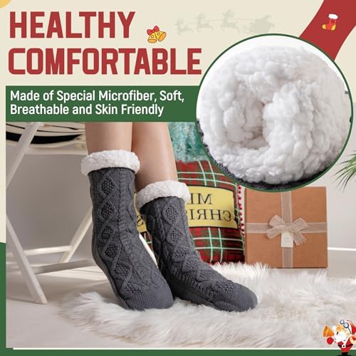 DoSmart Womens Fuzzy Slipper Socks Winter Thermal Snowflake Fleece Lining Christmas S …