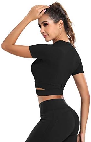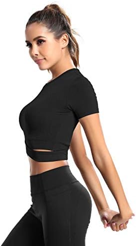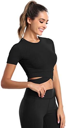 DREAM SLIM Short Sleeve Crop Tops for Women Tummy Cross Fitted Yoga Running Shirts Gy …