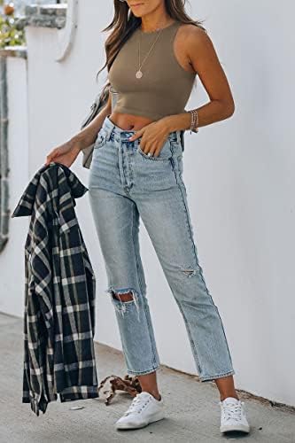 EFAN Womens Sexy Sleeveless High Neck Workout Crop Tops Cute Racerback Cropped Tank Tops Teen Girls Summer Clothes
