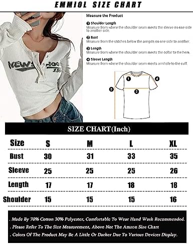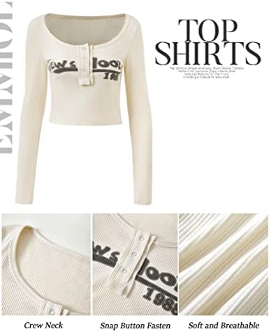 EMMIOL Y2K Tops for Women Graphic Crop Tops Button Up Long Sleeve Henley Shirts Slim …