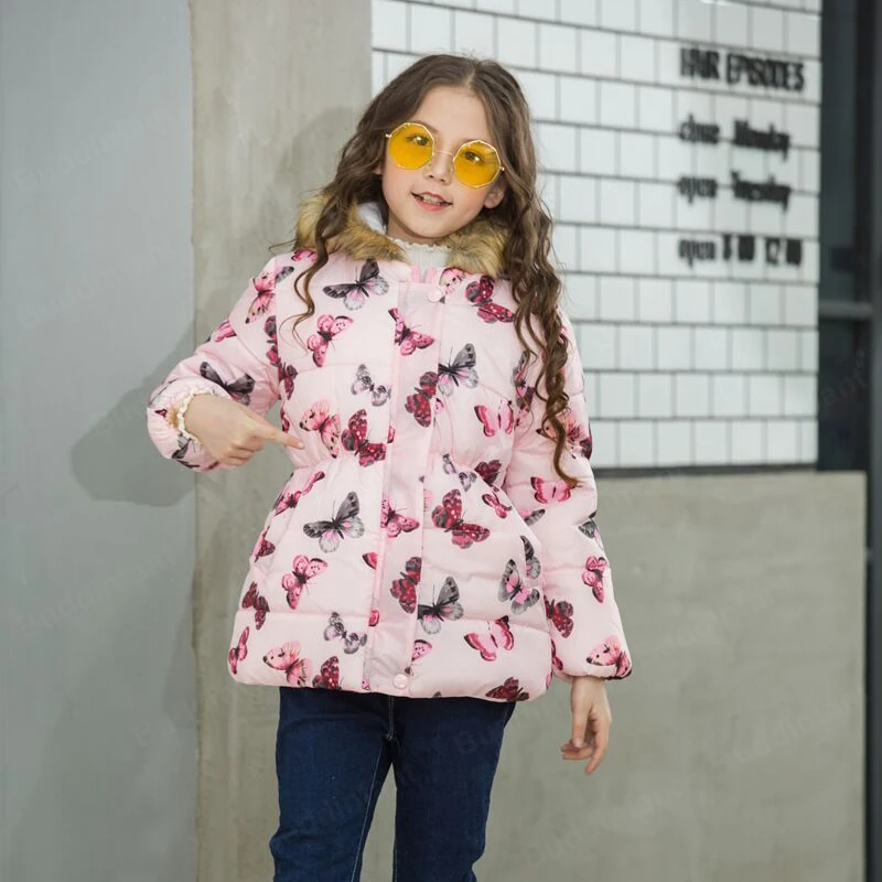 Fashion Children Clothing Winter Fur Jacket For Girls 8 10 years Warm Hooded Thick Co …