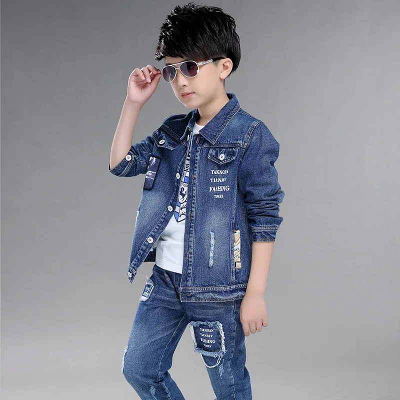 Fashion Teenage Boys Denim Clothes Set Autumn Children Jeans Coat and Pants Autumn Ba …