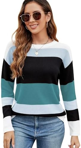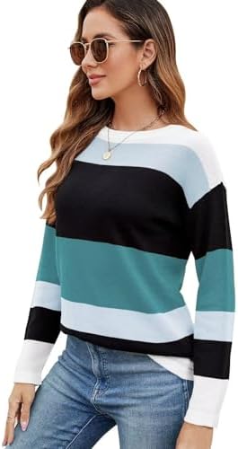 FEKOAFE Womens 2024 Fall Cute Sweaters Color Block Long Sleeve Deep V Neck Knit Pullo …