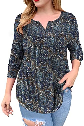FOLUNSI Women’s Plus Size Tunic Tops Casual Floral Blouses Long Sleeve V Neck H …