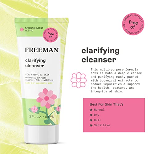 Fast track clear skin and hydration with our Freeman Clarifying Deep Cleanser & Aloe Vera Soothing Facial Moisturizer Bundle! Our multi-purpose formulas acts as both a deep cleanser and purifying mask, packed with botanical extracts and AHAs to help gently remove makeup, reduce impurities, and support the health, texture, and integrity of skin. Infused with aloe vera and ceramides, our moisturizer helps to calm, nourish and restore the skin. Our new formulated masks are dermatologist tested and safe for sensitive. We have also improved our facial mask formulation to be free of parabens, sulfates, phthalates, and mineral oil. Freeman is America’s #1 Face Mask Brand.* Since 1976, we’ve created feel-good formulas that seriously work (without losing all the fun!). We believe skincare belongs to everyone and strive to democratize beauty with affordable products. In our minds, clear skin = a clear conscious. Our top priority is ensuring our products are efficacious and full of good-for-you ingredients. Our new formulas are always dermatologist tested, free of parabens, sulfates, phthalates and mineral oil. We love our furry friends, too, and are proudly cruelty-free and never test on animals. From breakouts and blemishes to sensitive and dull complexions, we’re here to educate you on how to take care of your unique skin. We believe skincare is more than a routine… It’s about feeling good from the inside out!