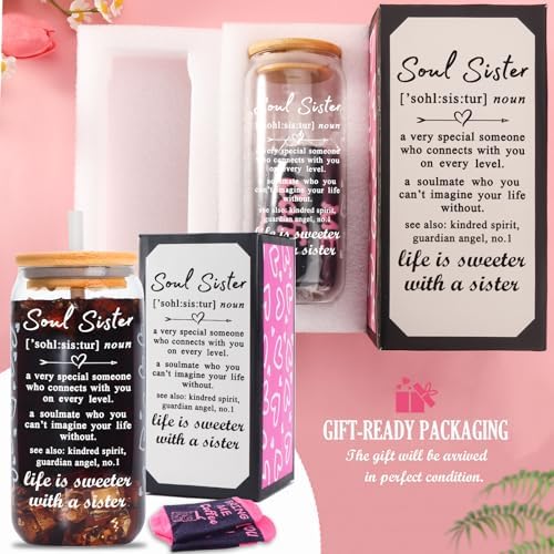 【Unique Sister Birthday Gift Idea】Beautiful, elegant, and meaningful soul sister definition glass iced coffee cup, made it thoughtful and unique birthday gift idea for best sisters/sister in law/soul sister/unbiological sister/big sister/little sister/bestie/bff, etc. Long distance friendship gifts, sisters leaving farewell goodbye gifts, inspirational and encouragement presents for sisters.