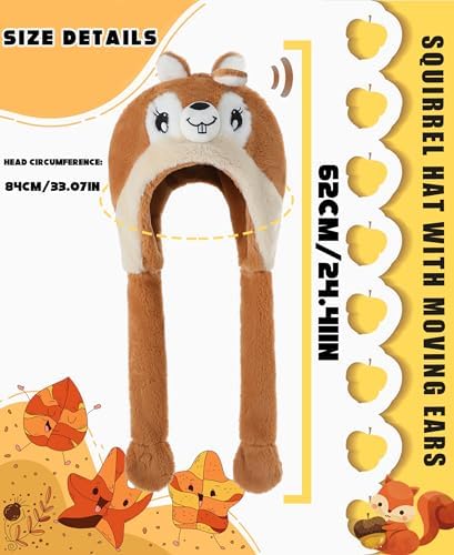 Kidukso Fun Squirrel Moving Ear Hat Soft Plush Animal Hat with Ears Moving Jumping Cap Christmas Gifts for Women Men, Brown