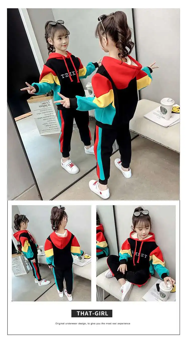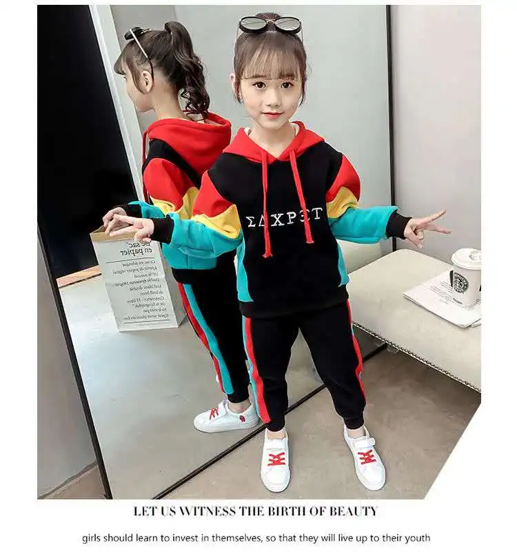 Girls Fashion Hoodies Pants 2pcs Clothing Sets Spring Autumn Children Sport Sweater C …