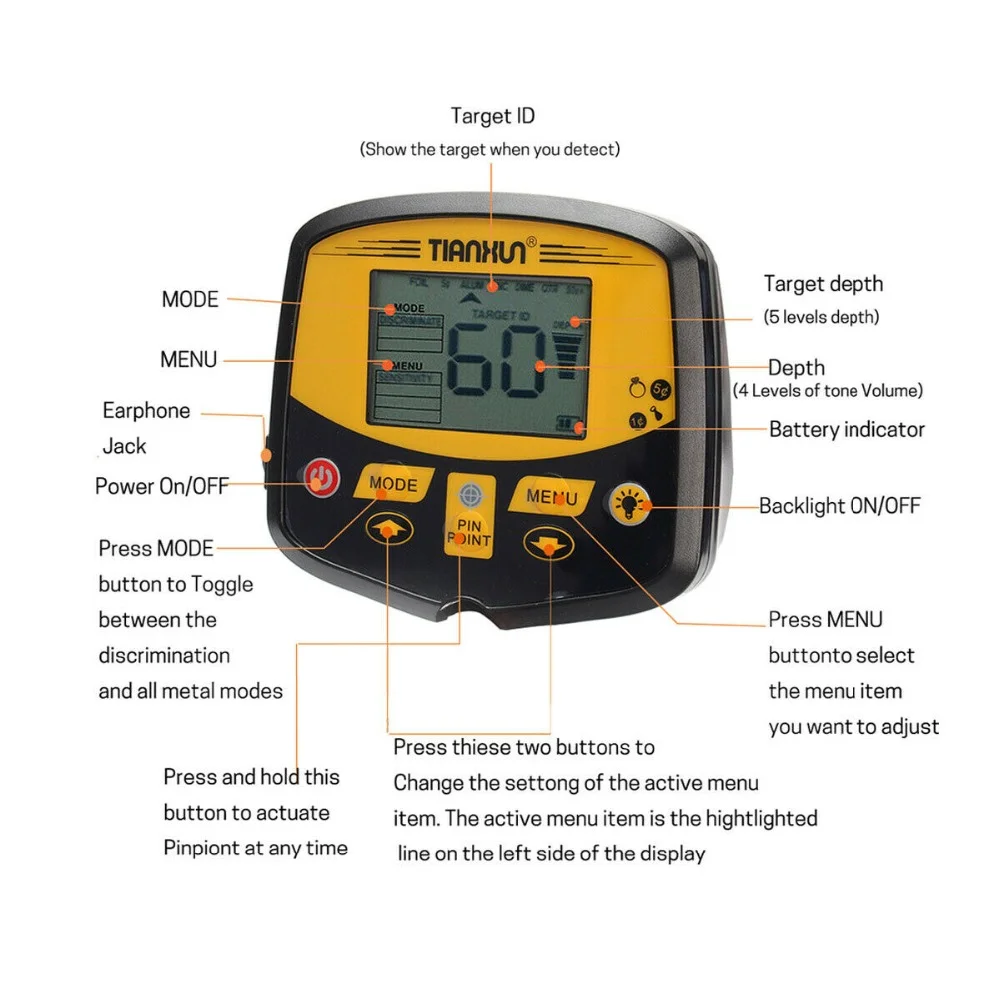 3 Detection Mode: All Metal (Detect all kinds of metal), Disc (Discriminate metal type), Pinpoint(Find the exact location of a target), meeting for different demands.
