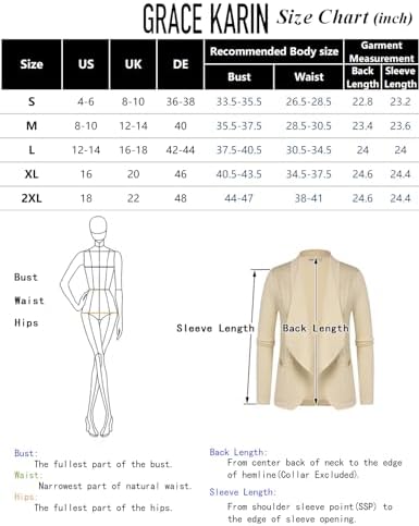 GRACE KARIN Women’s Open Front Sweater Blazer Lapel Cardigan Sweater Long Sleev …