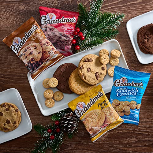 This variety pack of Grandma’s cookies offers a great selection of our most popular flavors including Chocolate Chip, Oatmeal Raisin, Peanut Butter, Chocolate Brownie, Mini Chocolate Chip cookies and Vanilla Sandwich Cremes. These snacks are perfect for packing in a lunch, enjoying in the car, after school, or even at work. With 30 individually wrapped packs, there’s something for everyone to enjoy.