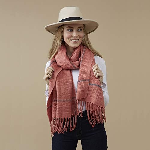 Hadley Wren Women’s Knox Fringe Scarf, Pink, 71×25.5