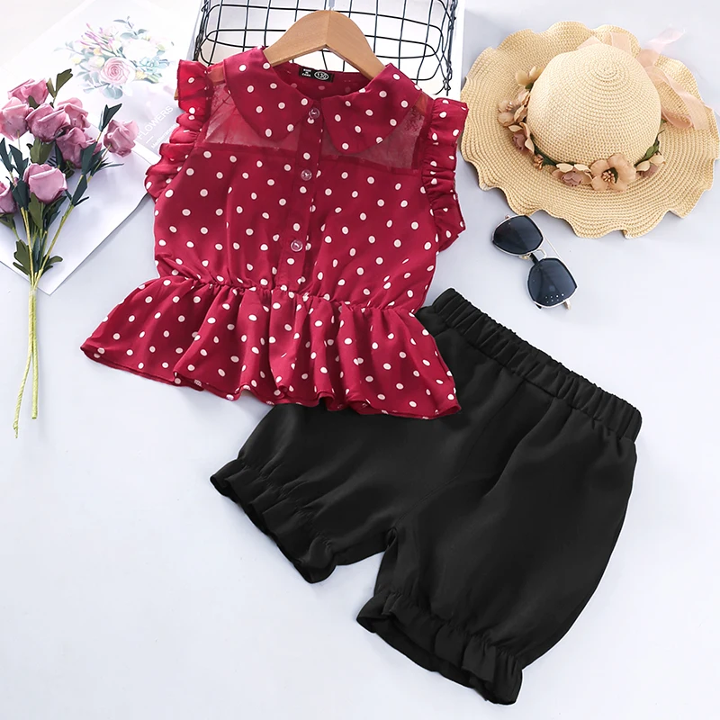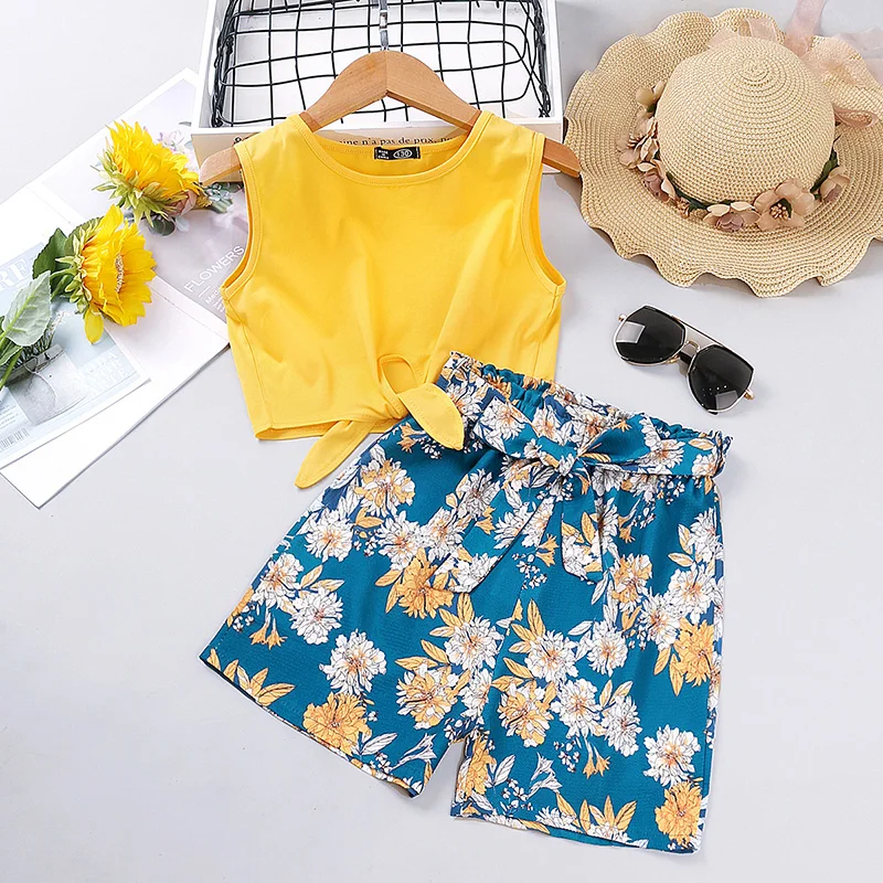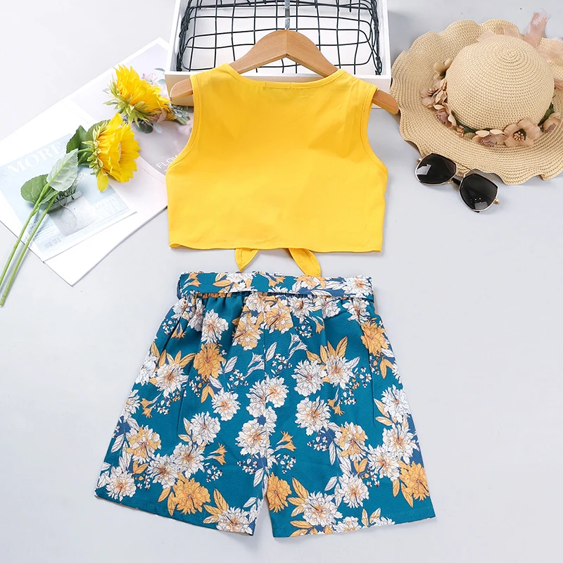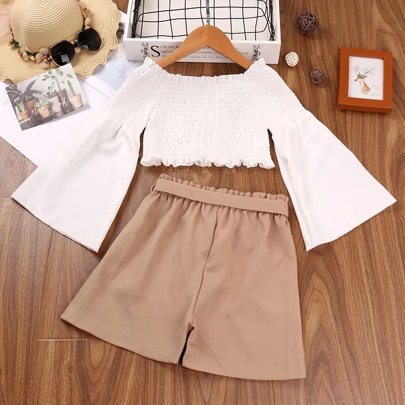 HE Hello Enjoy 2Pcs Infant Baby Girls Summer Sets One-shoulder Solid Color Top + Shor …