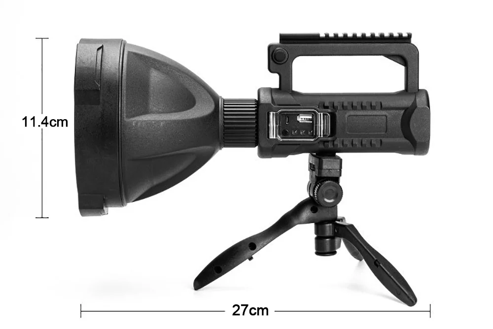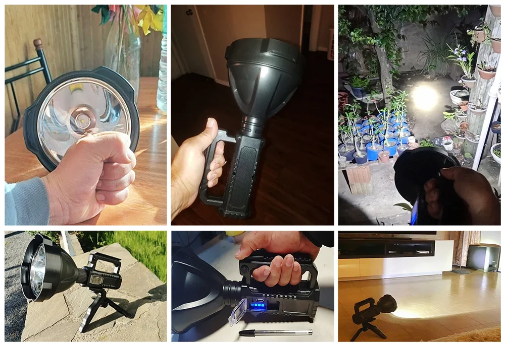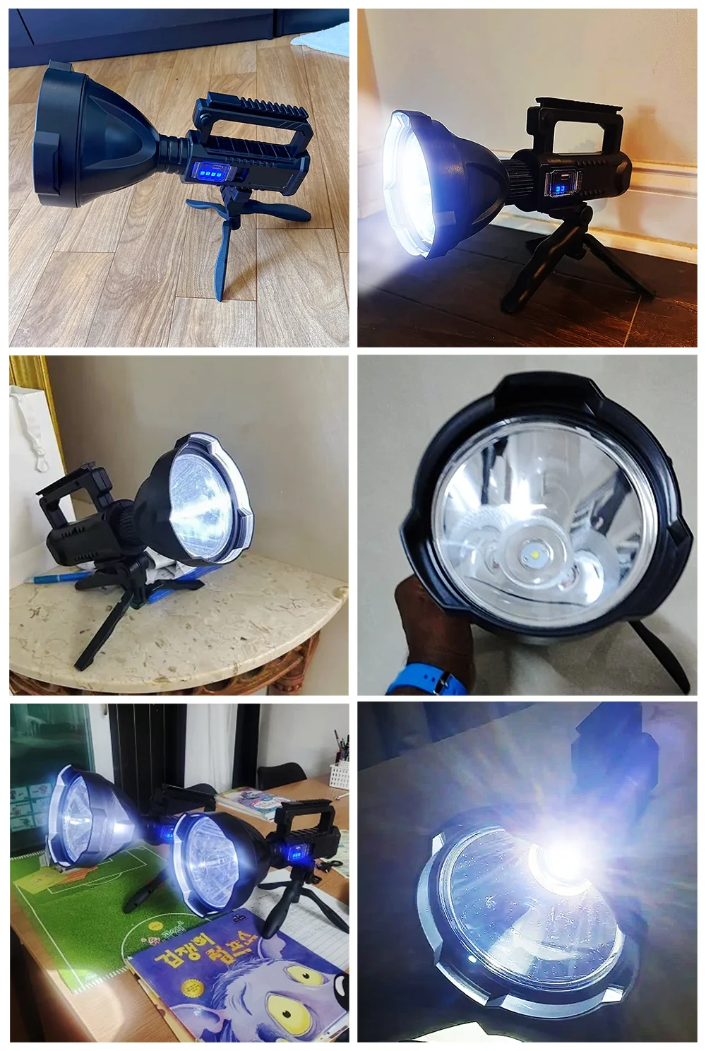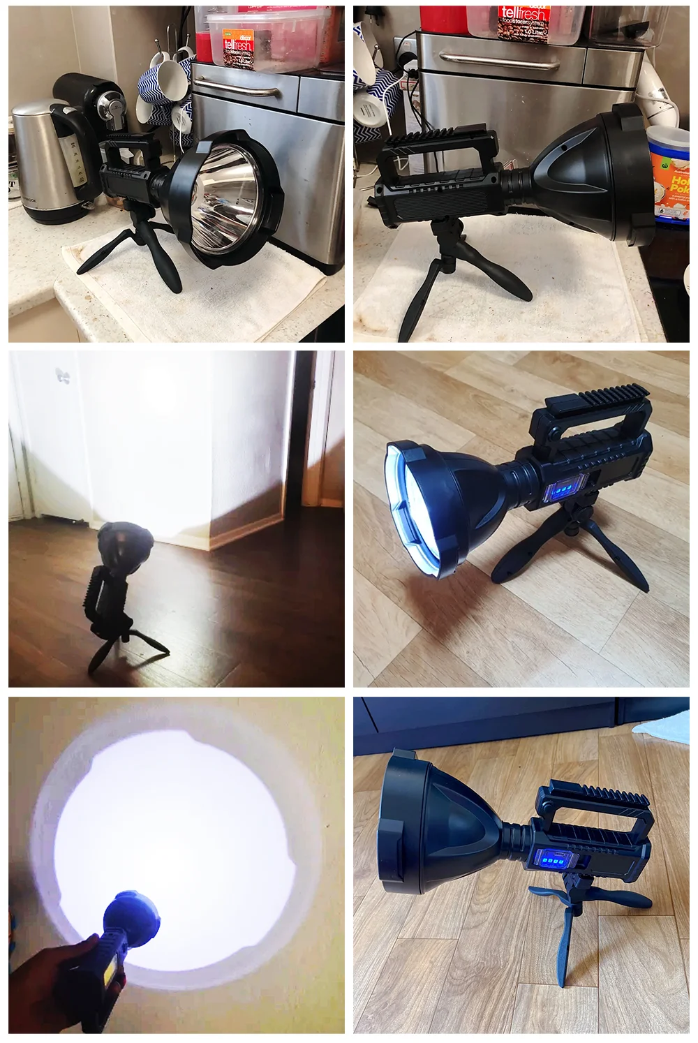 🔦Built-in 8000mAh battery, the longest use time can reach 12 hours. This search flashlight package comes standard with a tripod, which can be used together to become a fixed light source.