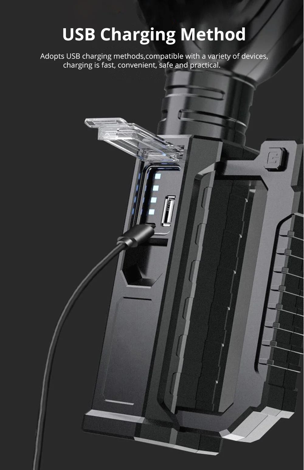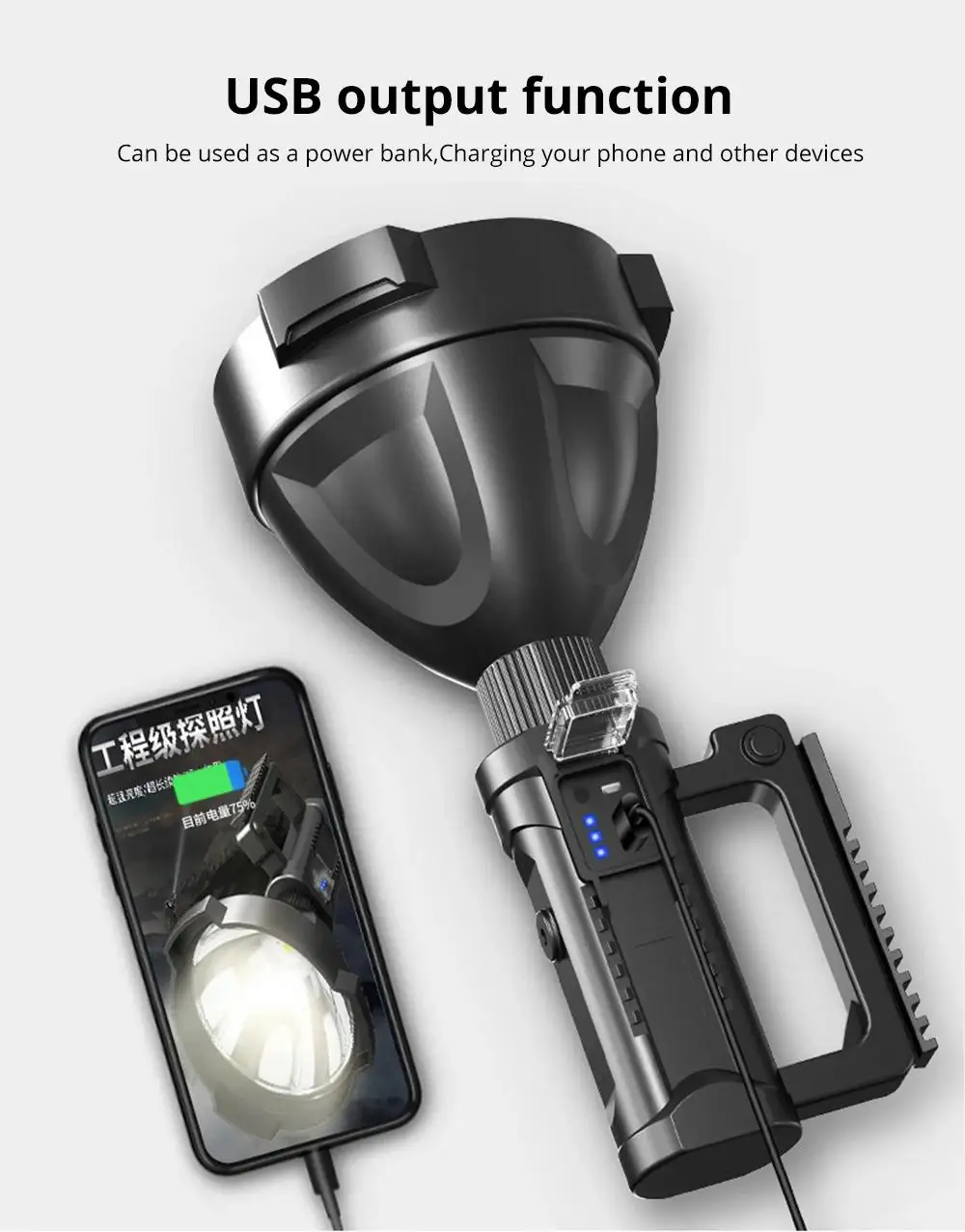 High Power LED Flashlight Searching Fishing Lantern Torch USB Rechargeable Powerful S …