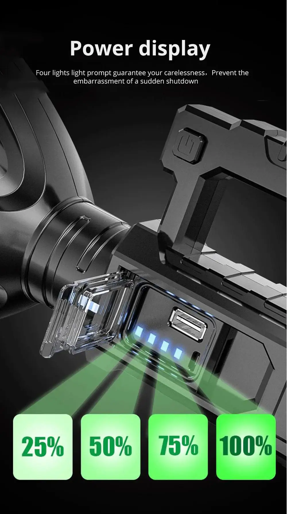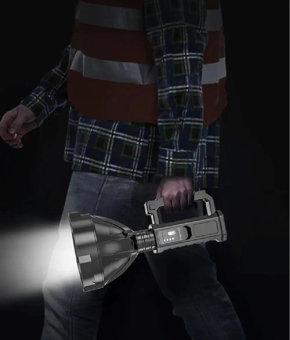 🔦The latest 2024 handheld large-diameter search flashlight, with a unique search light appearance, the lighting diameter reaches 11.5cm, the lighting brightness can reach an astonishing 5000lm, and the ultra-long-distance lighting is 1500m.