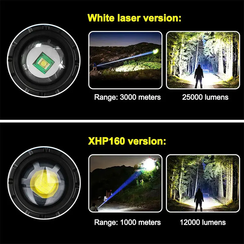 High Power LED Laser Flashlight 2000W Zoomable Tactical Lanterns Outdoor Emergency Sp …