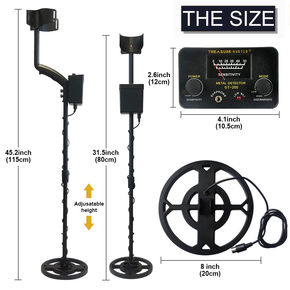 High Sensitivity Metal Detector GT200 Adjustable Tracker Gold Detector De Metales Pro …