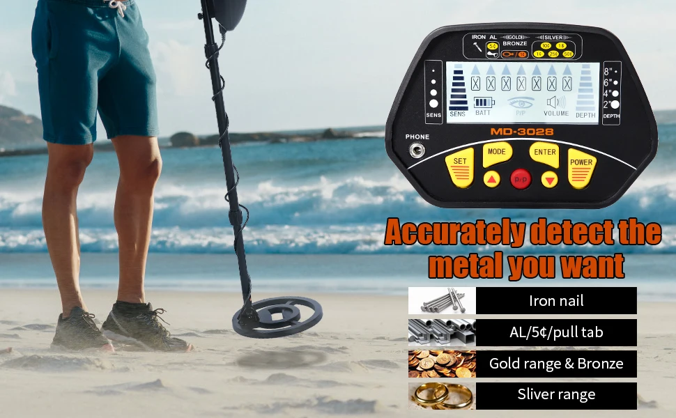 【5 Modes of Operation】: MD910B adults metal detector has 5 distinct modes, allows you to correctly search for the favored metals. "All METAL" Mode – notifies you whenever it finds any metal. "DISC" Mode: discriminates the unwanted target. "MEMORY" Mode – memorizes all the settings before power is off. "JEWELRY "Mode – finds Jewelry such as rings, bracelets, necklaces. "PINPOINT" Mode – enables to pinpoint the target.